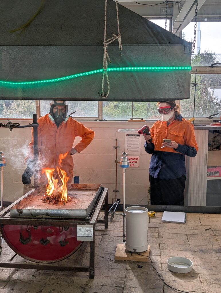 Working with researchers from HyTECH a series of single species burns of softwoods, hardwoods and grasses found in Tsamania were conducted. Species burnt included softwoods such as Pine (Pinus radiata), Oyster Bay Pine (Callitris rhombodea); hardwoods such as Blue Gum (Eucalyptus globulus), (Eucalyptus viminalis); and grasses and other graminoids such as Poa, Sagg (Lomandra longifolia) and (Lepidosperma laterale). Each species was burnt for 20-30 minutes with smoke captured on filters through Aerosol monitoring equipment. Aerosol filters were then analysed a hydrophilic interaction liquid chromatography (HILIC)-based separation method, coupled with triple quadrupole mass spectrometry, that is capable of separating and quantifying all of our target compounds.